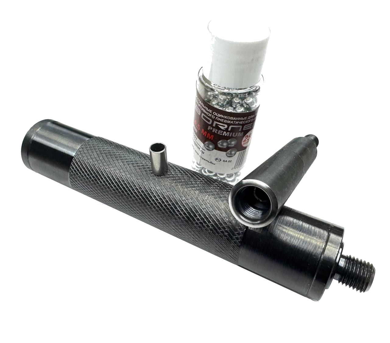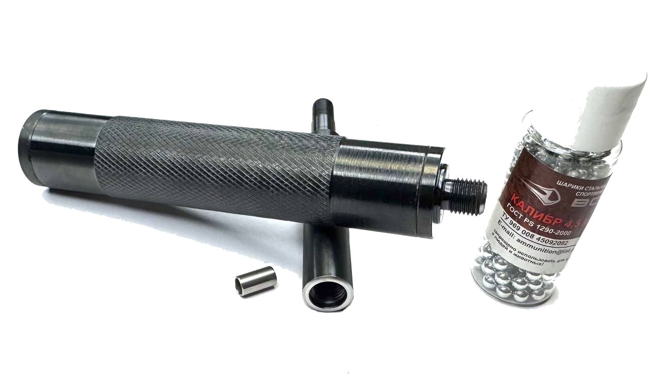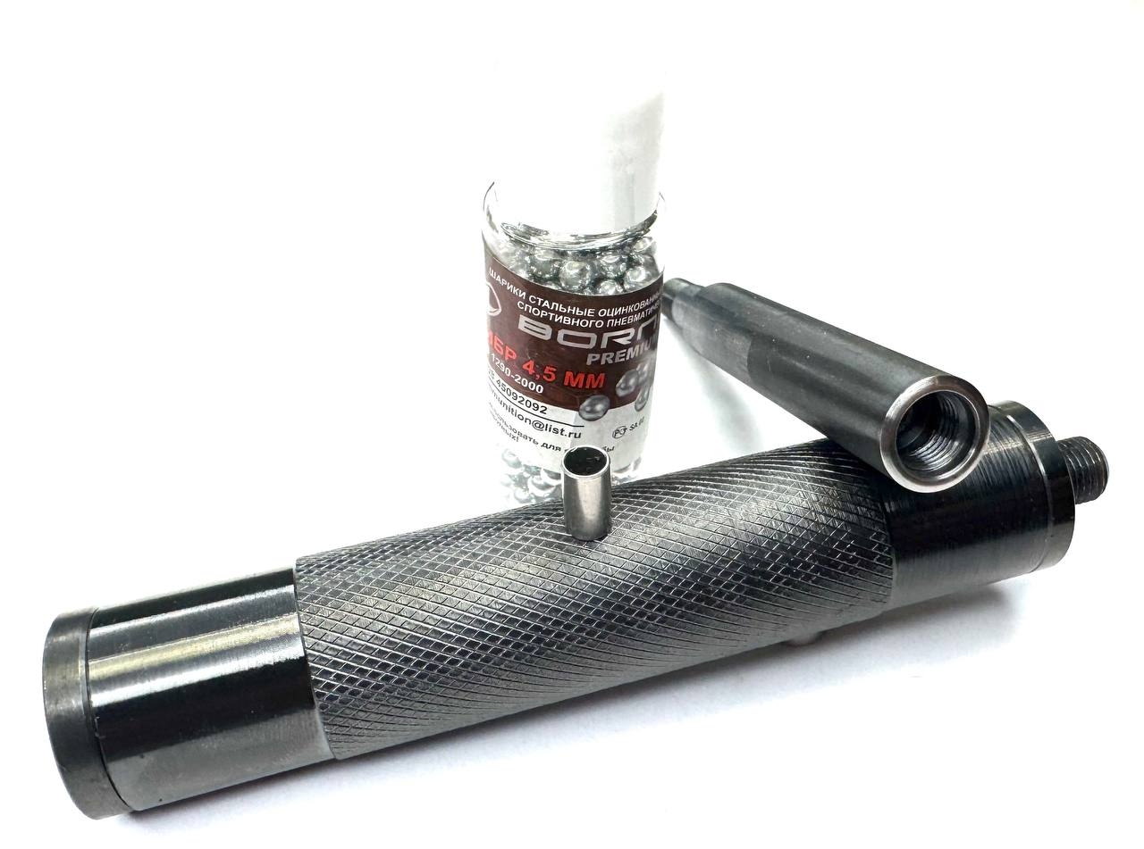 Однако следует учитывать, что для достижения наилучших результатов необходимо тщательно подбирать шары. Рекомендуется использовать шарики, произведённые конкретным производителем, к примеру, шары Борнер, калибр которых составляет менее 4,4 мм. В случае отсутствия таких шаров, возможен ручной подбор шариков других производителей из пачки калибра 4.4 мм, что также может обеспечить требуемую точность стрельбы. В комплект прилагается трубка-калибр.