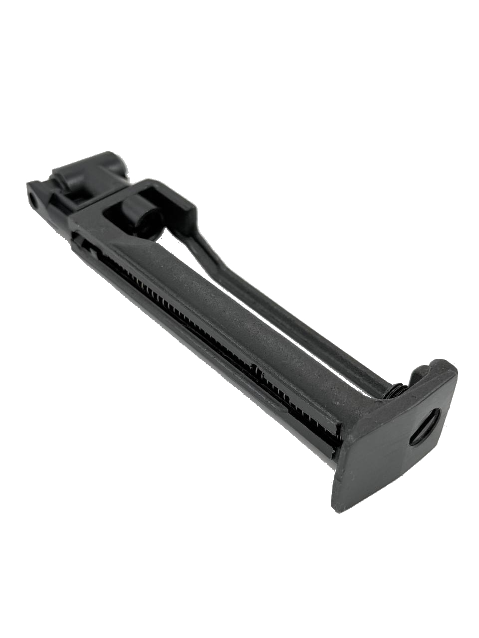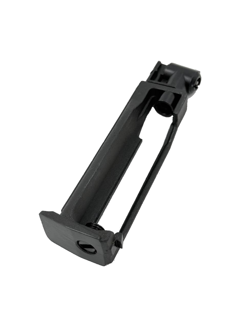 Запасной магазин (обойма) для МР654К 20х серий под широкую рамку – это устройство, что предназначено для размещения баллона СО2, а также подачи газа и загрузки шариков ВВ, используется в отечественном газобаллонном МР-654К пневматическом пистолете. В корпусе данного магазина успешно расположены уплотнительные элементы, а также перепускной клапан, устройство подачи шариков и поджимной винт самого баллона. Такой магазин может вместить в себя 13 штук шариков, которые имеют калибр 4,5 мм. Материал, что используется при изготовлении магазина, для пневматического пистолета МР-654К– это сталь.