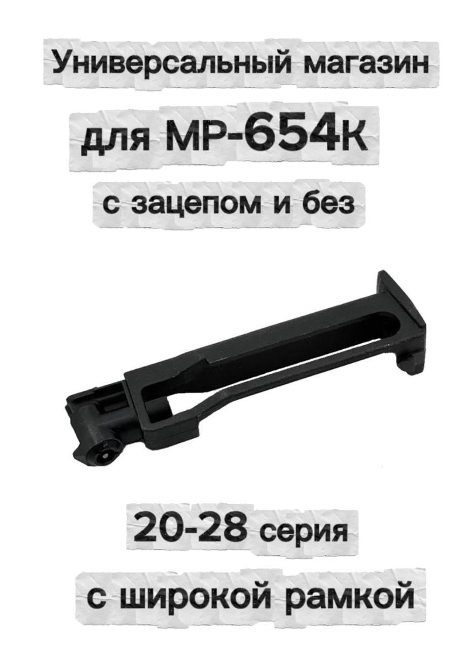 Запасной магазин универсальный для МР-654К с зацепом и без (20-28 серии с широкой рамкой)