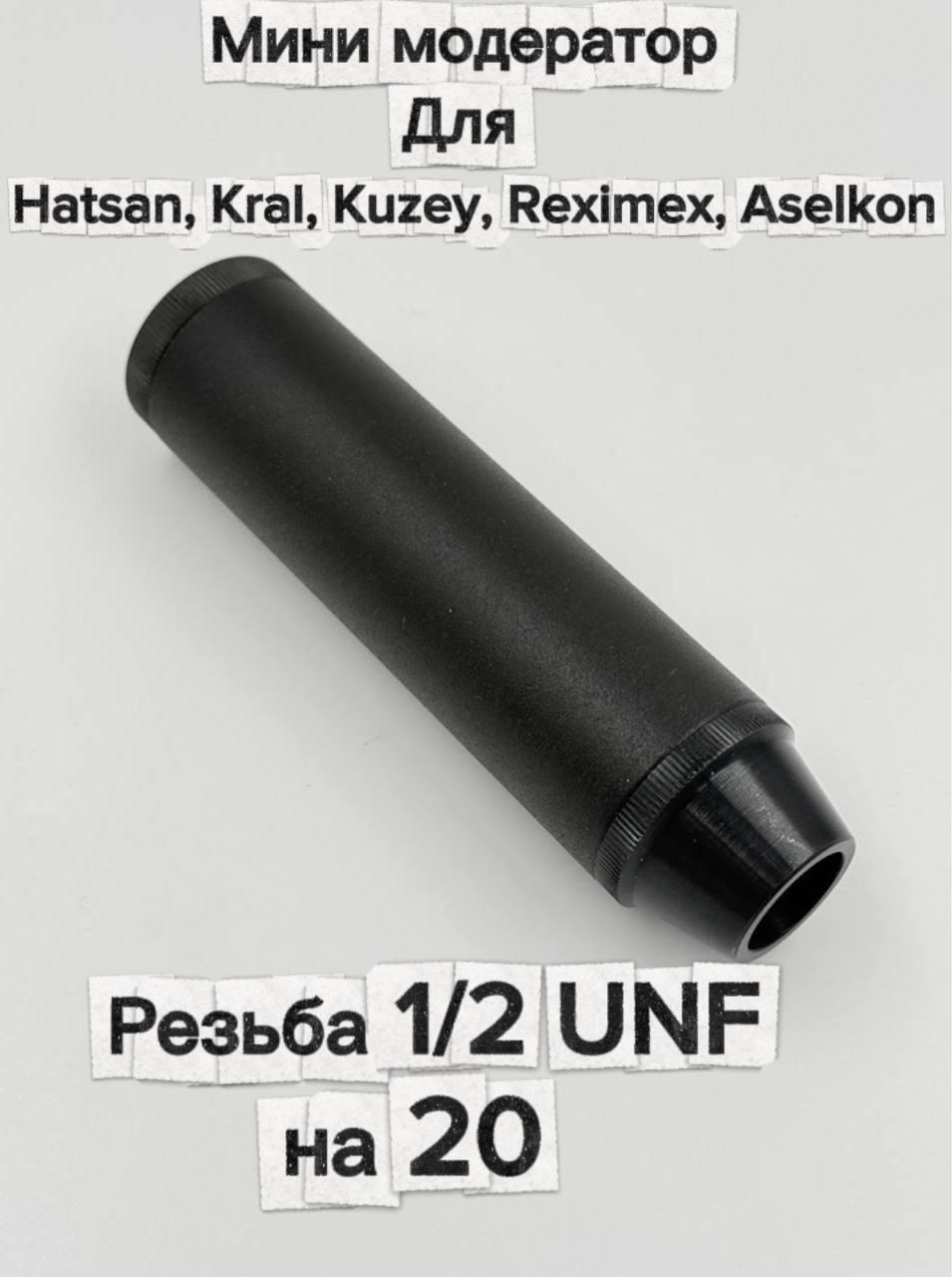 Надульник (мини модератор) для Hatsan, Kral, Kuzey, Reximex, Aselkon шумо вибропоглощающий Т10 сталь, крепление конусное дюраль (для винтовок где есть резьба с завода на стволе)