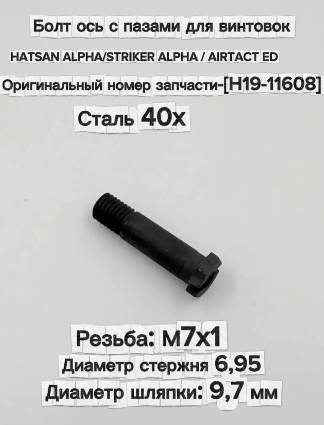 Осевой винт на пневматику Hatsan, болт ось перелома ствола Hatsan Alpha/Striker Alpha/AirTact ED, 30 мм, М7х1 (H19-11608), фрезерованная головка с пазами