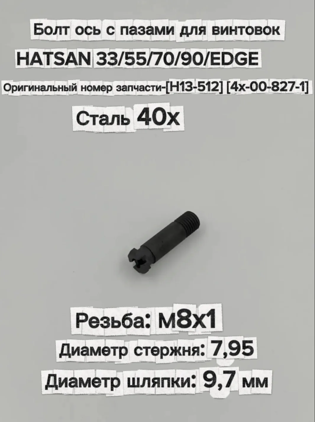 Осевой винт на пневматику Hatsan 33/55/70/90/EDGE, болт ось перелома ствола 30 мм, М8х1, (H13-512), (4x-00-827-1), фрезерованная головка с пазами